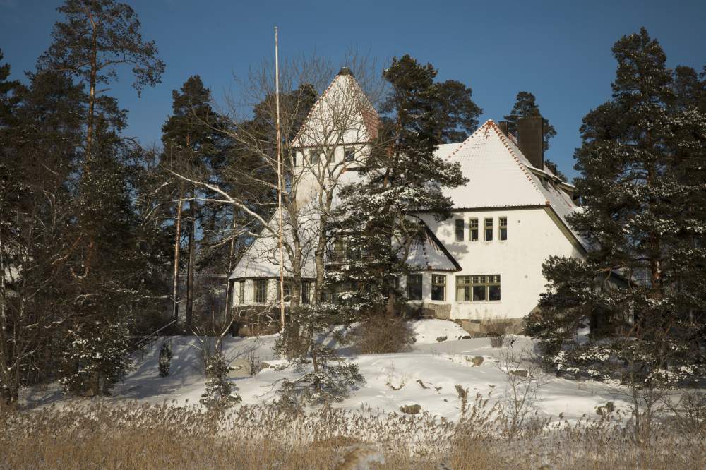 The villa was designed in Jugend style, with its architecture being inspired by carelianism, medieval church and castle construction.
